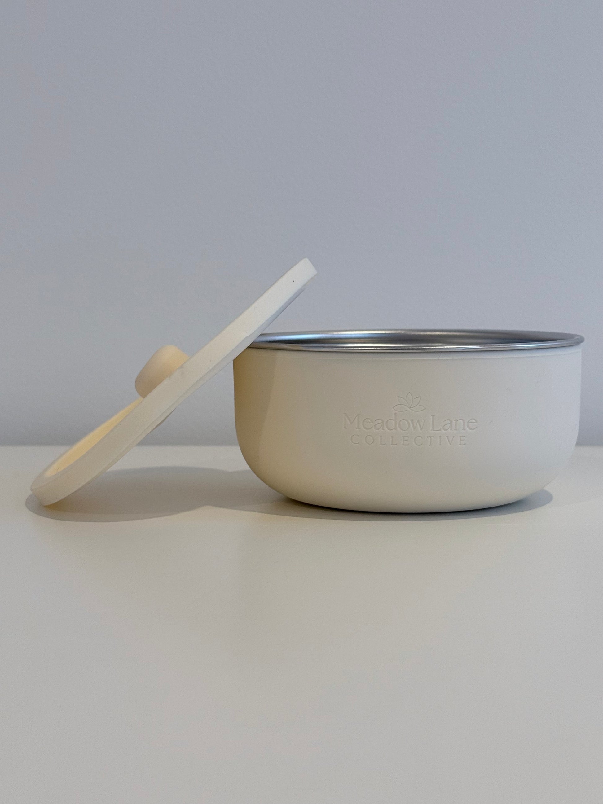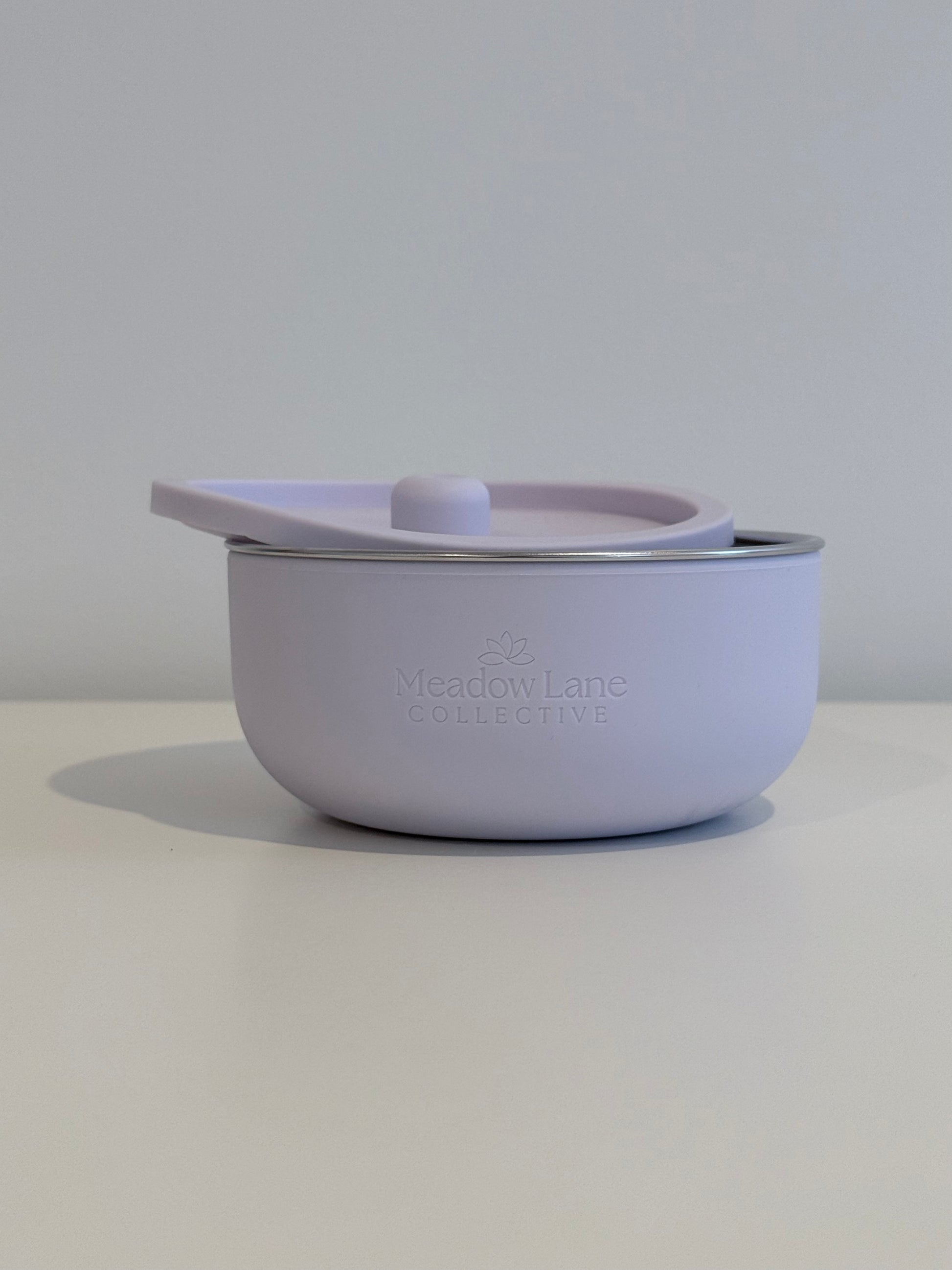 Make mealtimes easier (and safer!) with our 304 food-grade stainless steel kids bowl designed for little ones 3+ who are ready to eat on their own without a suction base. The soft, non-slip silicone sleeve helps keep it steady while little hands dig in. Comes with a silicone lid to make saving leftovers or preparing ahead a breeze